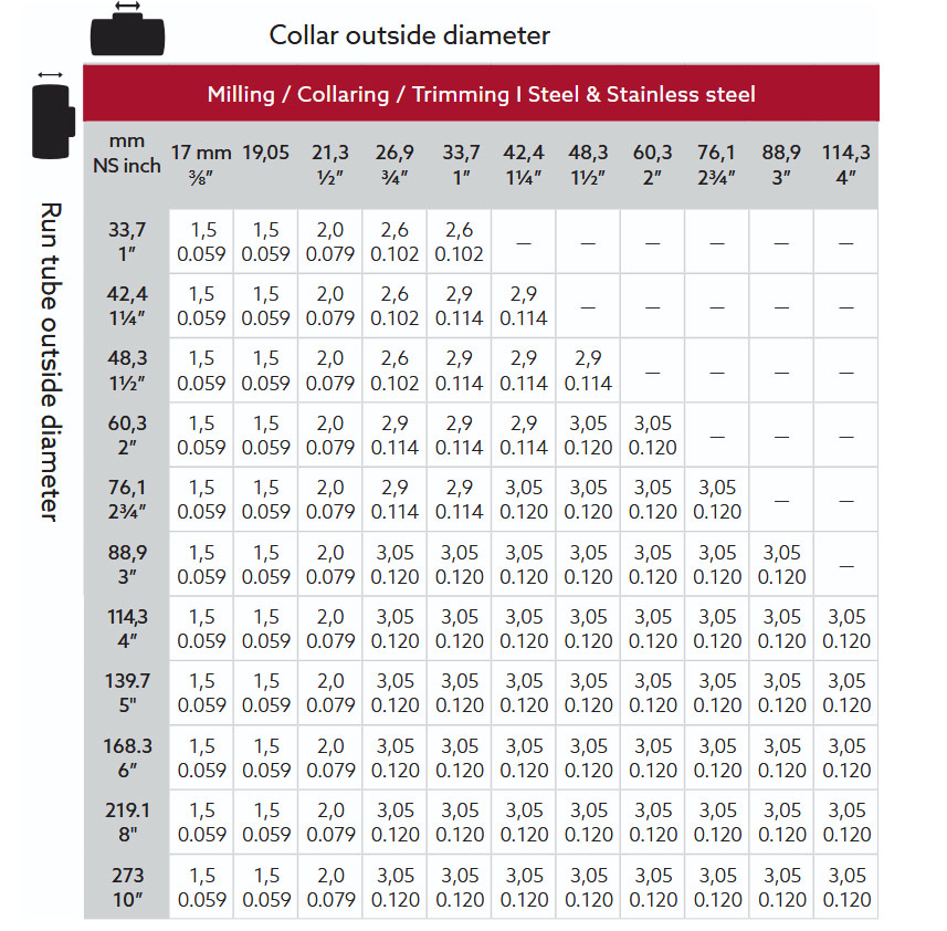 Grundrohrdurchmesser | 33.7 – 273 mm / 1″ – 10″ |